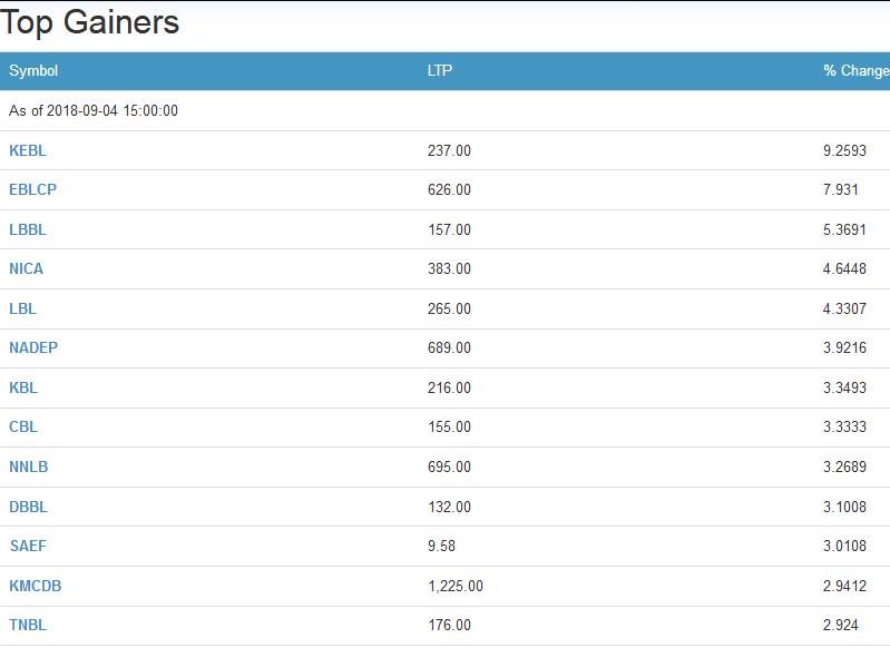 बजारमा आज सवै भन्दा धेरै कावेली विकास बैंकका लगानीकर्ताले आफ्नो आम्दानी ९ प्रतिशत बढीले बढाएका छन् । यता, सवै भन्दा धेरै अरुण कावेली पावर लिमिटेडका लगानीकर्ताले आफ्नो आम्दानी ३ प्रतिशतले गुमाएका छन् । सामान्य अंकले बढेको बजारमा बढ्ने र घट्ने कम्पनीहरु यस प्रकारको छ ।