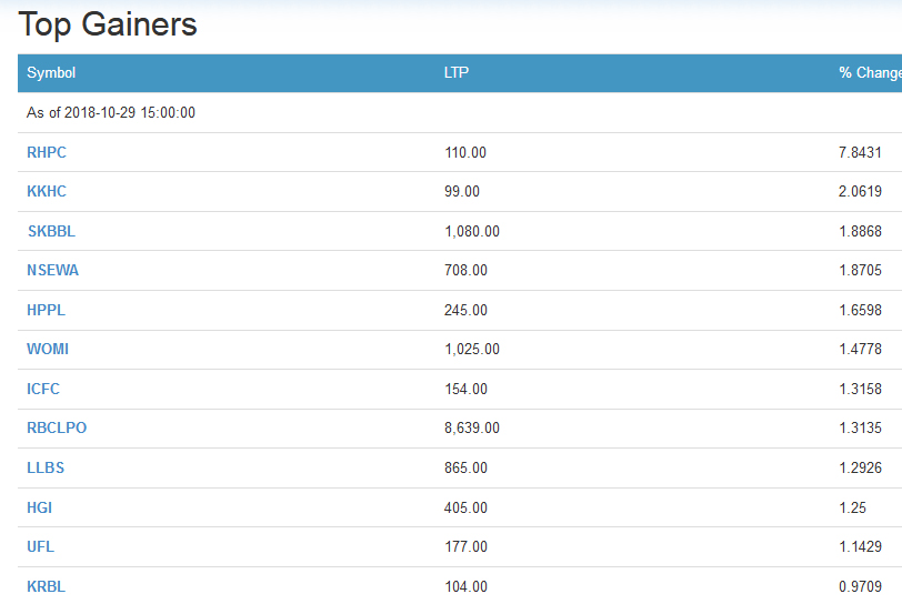 आज रिडी हाइड्रो पावर कम्पनी, खानीखोला हाइड्रो पावर कम्पनी र साना किसान बैंकको लगानीकर्ताले कमाएका छन् भने रैराङ हाइड्रो पावर कम्पनी, पोखरा फाइनान्स लिमिटेड र एनआइबिएल प्रगति फण्ड र युनाइटेड मोदी हाइड्रो पावरका लगानीकर्ताले गुमाएका छन् । घटेको बजारमा बढ्ने र घट्ने कम्पनीहरु यस प्रकारको छ ।