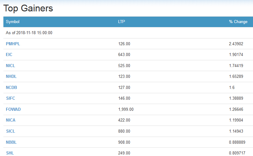 कारोबार भएको समूहमध्ये व्यापार समूह ०.८४ अंकले बढेको छ । यता, बैकिङ १०.१६, होटल ०.२३, विकास बैंक ९.४३, जलविद्युत, १२.५८, फाइनान्स ३.९, निर्जीवन लाइफ इन्स्योरेन्स २९.८, अन्य ७.१, माइक्रोफाइनान्स ८.८८ र लाइफ इन्स्योरेन्स ४९ अंकले घटेको छ । घटेको बजारमा कमाउने र गुमाउने कम्पनीहरु यस प्रकारको छ ।