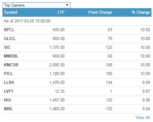 यस दिन सवै समुहमा हरियाली छाएको छ । उच्च अंकले बढेको बजारमा बैंक ७५.०९अंक, होटल ७१.०९ अंक, विकास बैंक ८२.९७ अंक, हाइड्रोपावर १०६.५१ अंक, फाइनान्स ३८.९४ अंक, इन्स्योरेन्स ५०३.११ अंक र अन्य १०.१२ अंकले बढेको छ ।