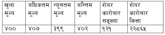 १८० दिनको औसत व्यापार मूल्य : रू.४०१.२०