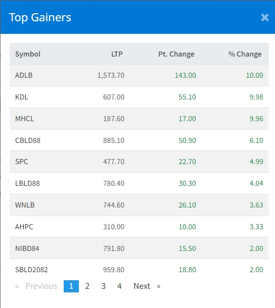 आज सेयर बजार घटेतापनि केहि कम्पनीहरुको सेयर मूल्य बढेको छ । आज नेप्सेमा कारोबार भएका ३ कम्पनीको सेयरमा सर्किट लागेको छ । आज आदर्श लघुवित्त, कालिन्चोक दर्शन र मोलुङ हाइड्रोपावरको शेयरमा सर्किट लागेको छ । त्यस्तै, सिभिल बैंक डिभेन्चर २०८८ , सामलिङ पावर लगायत अन्य कम्पनीको सेयर मूल्य बढेको छ ।