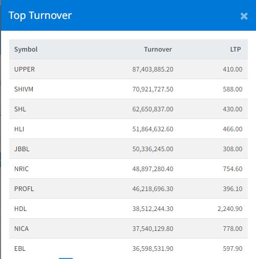 त्यस्तै, शिवम् सिमेन्टस, सोल्टि होटल, हिमालयन लाइफ, ज्योती विकास बैंक, नेपाल पुनर्बीमा, प्रोगेशीभ फाइनान्स, हिमालयन डिष्टलरी, एनआईसी एशिया बैंक र एभरेष्ट बैंकको सेयर सर्वाधिक खरिदबिक्रि भएको छ।