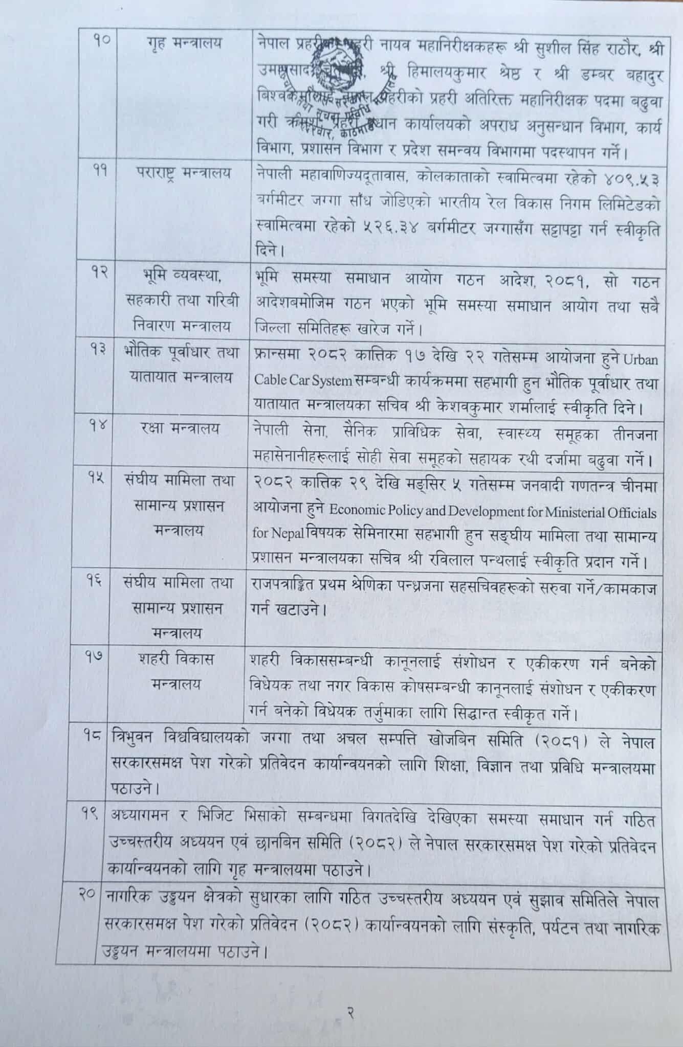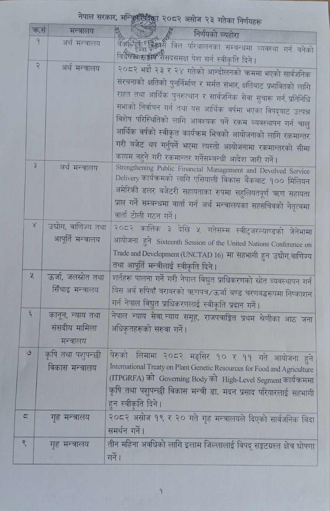 बिहीबार बसेको मन्त्रिपरिषद् बैठकका निर्णयहरू सार्वजनिक गरिएको छ।