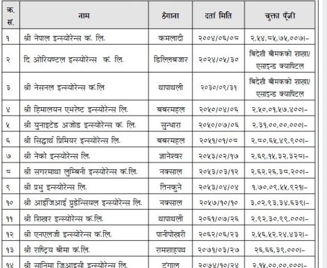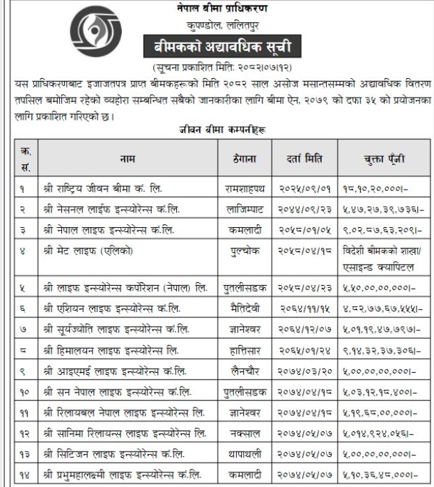 २०७८ सालको चैत १० गते नेपाल बीमा प्राधिकरण (तत्कालिन बीमा समिति) ले बीमा कम्पनीहरुले चुक्ता पुँजी वृद्धि गर्नु पर्ने निर्णय गर्यो । प्राधिकरणले जीवन बीमा कम्पनीको चुक्ता पुँजी ५ अर्ब र निर्जीवन बीमा कम्पनीको चुक्ता पुँजी २ अर्ब ५० करोड हुनु पर्ने निर्णय गरेको थियो ।