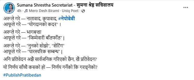 सुमनाले सामाजिक सञ्जालमा लेखेकी छन्–
