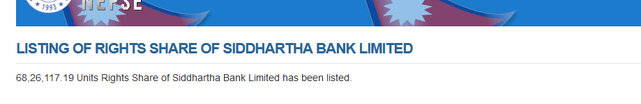 ९७ लाख ६३ हजार २०० कित्ता हकप्रद सेयर १९ लाख ८३ हजार १५० कित्ता बोनस सेयर नेप्सेमा सूचिकृत ।