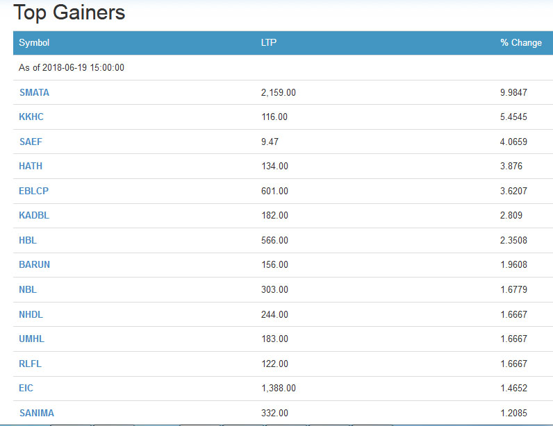आजको सेयर बजारमा बढ्ने र घट्ने समूहरु